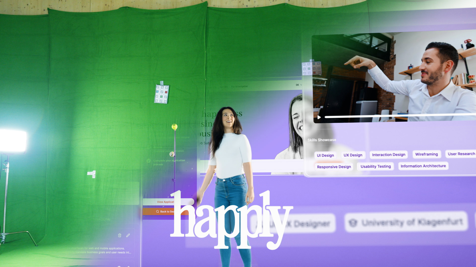 We’re proud to present our product film for Happly — an innovative online job platform designed to make careers shine. The film blends live-action and animation into a distinctive, creative hybrid. Shot on a greenscreen stage, we built stylized