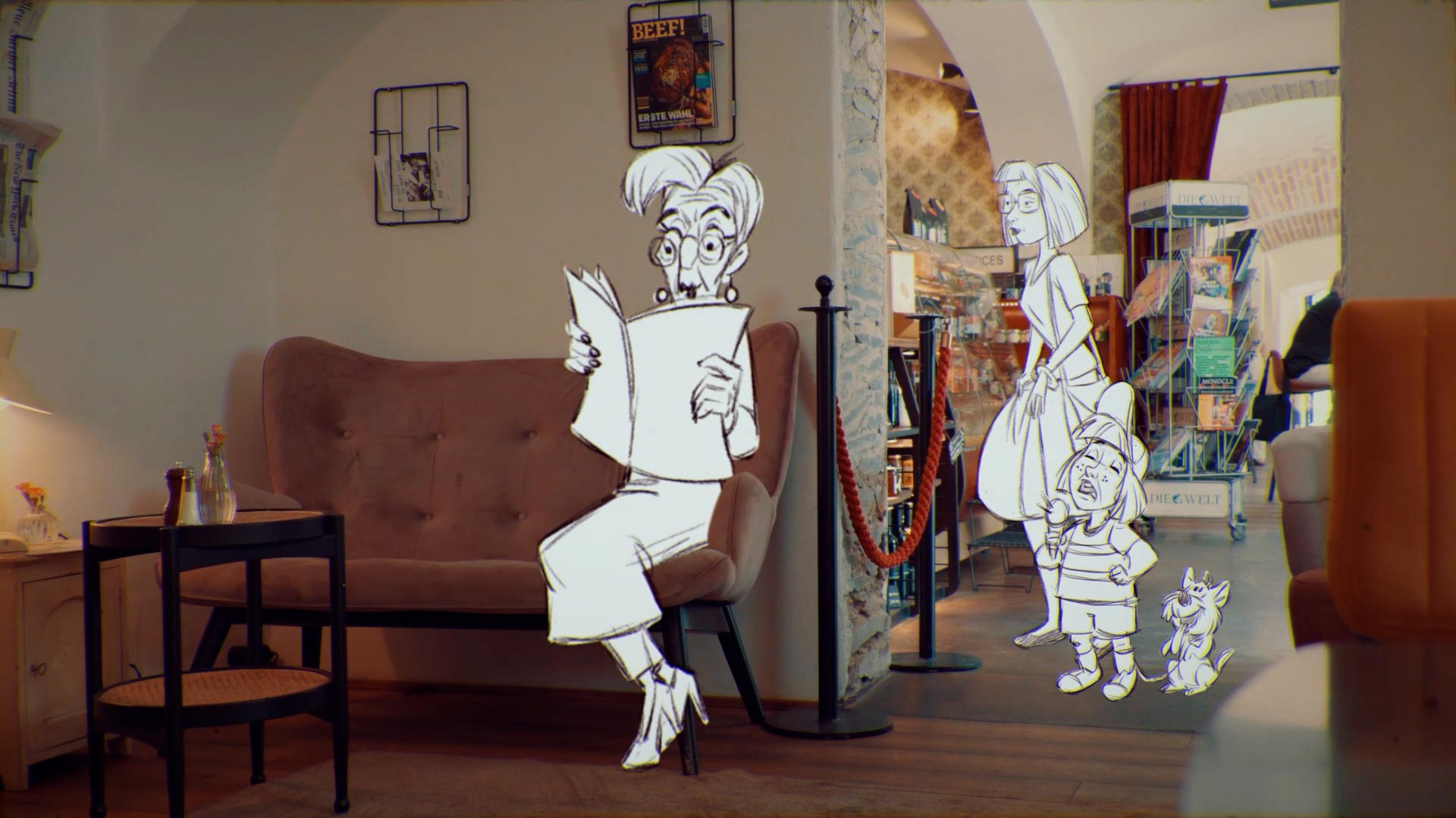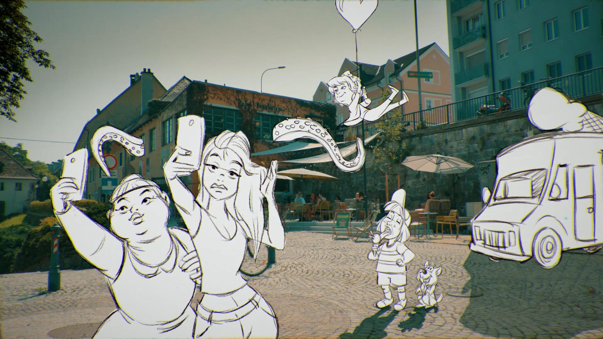 statement that works as a launch piece — and as a flexible communication asset for the different areas and formats of Hafenstadt. The creative concept is built around a distinctive hybrid style: real footage of the location combined with hand-drawn characters that guide the audience through the world. The illustrations were created by the talented illustrator Sarah-Lisa Hleb, and Al Gaivoto brought them to life with classic 2D animation. These characters don’t just “decorate” the film — they add humor, movement, and a recognizable identity that gives the project its signature tone. A key part of the concept was consistency across channels: the same illustrated world continues beyond the video and reappears in the menu artwork and social media visuals, creating a coherent brand experience across touchpoints. Instead of producing a generic city promo, we focused on a crafted, modern look: authentic light, real spaces, and a graphic layer that ties everything together. The result is a film that positions Hafenstadt as a contemporary urban destination — energetic, creative, and full of character. What’s next? Come by and see for yourself — Hafenstadt is open.